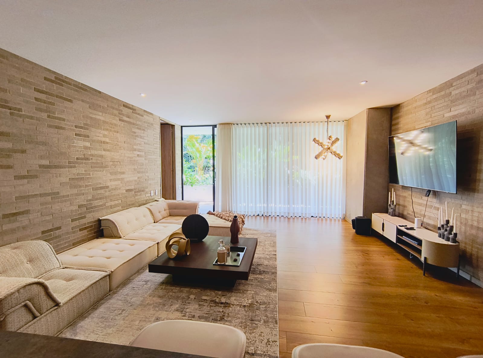 Cuenta con 3 habitaciones (todas con baños, 2 con vestier y la ultima con closet) salon comedor amplio, balcon en la sala, balcon en la habitacion principal, cocina integral abierta, zona de ropa, pisos en marmol. Tiene 1 cuarto útil y parqueadro doble lineal.